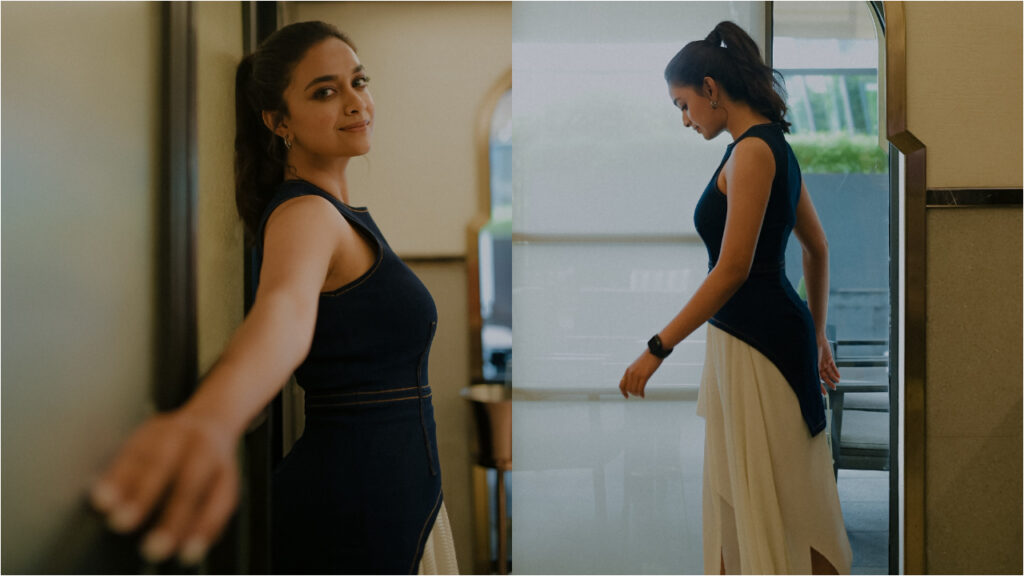 Keerthy Suresh effortlessly rocks the blue denim, showcasing a perfect blend of casual style and chic elegance. The denim features a flattering fit that accentuates her silhouette, while the classic blue hue offers versatility for various occasions.