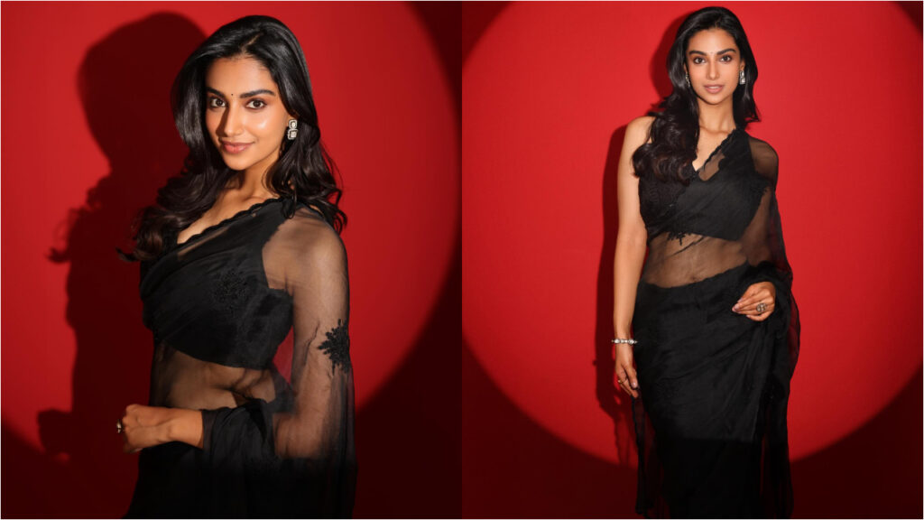 Meenakshi Chaudhary | బ్లాక్ చీరలో నడుము అందాలతో రెచ్చగొడుతున్న మీనాక్షి చౌదరి