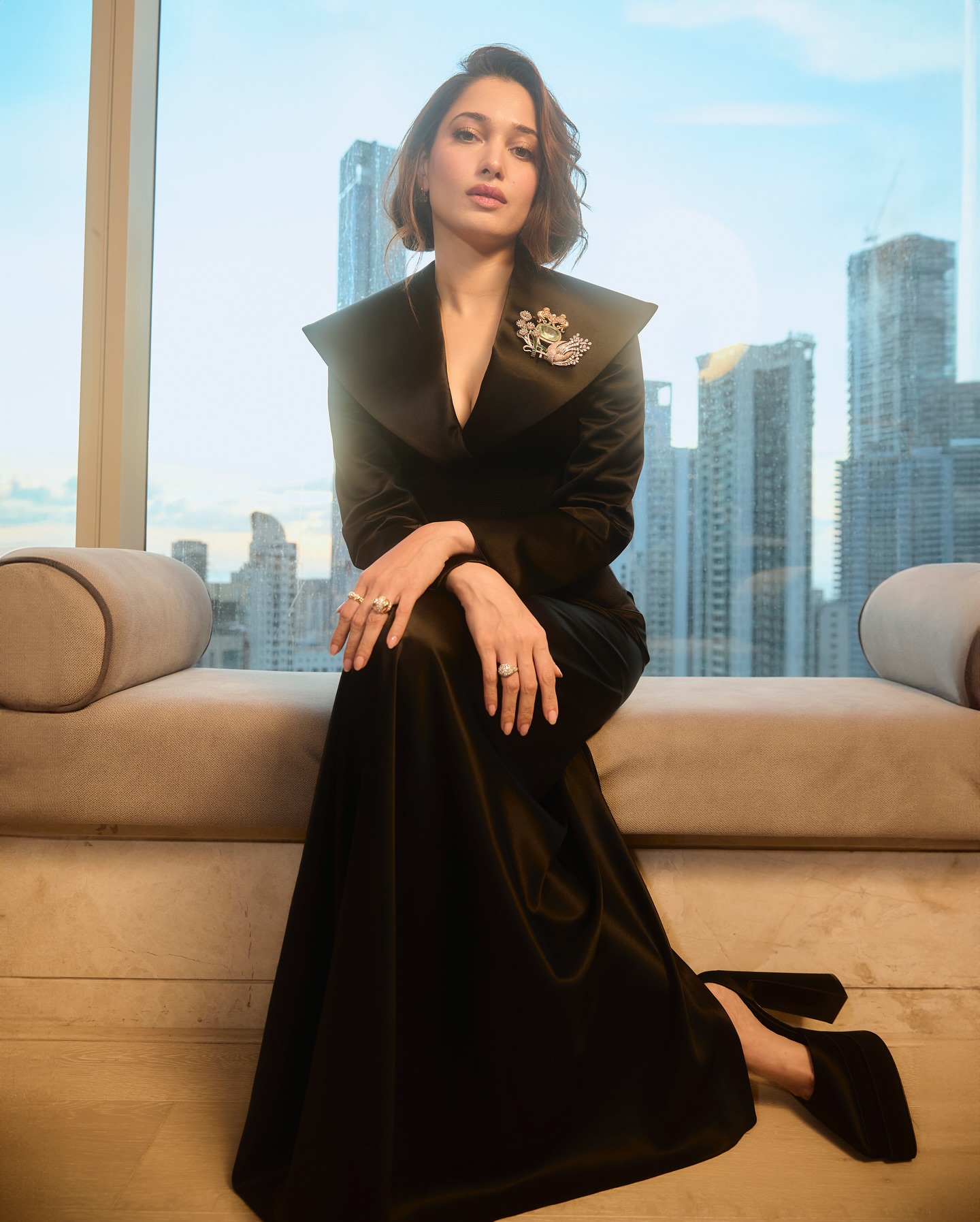 Tamannaah Bhatia has consistently showcased her fashion prowess in various black outfits, each reflecting her unique style. Here are some of her standout black ensembles