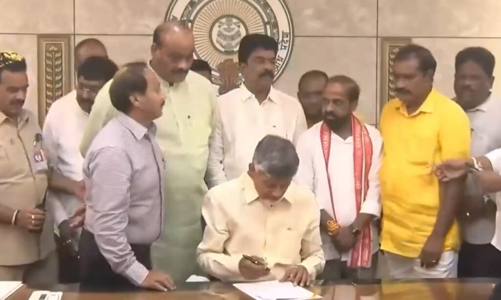 విధాత : ఆంధ్రప్రదేశ్ ముఖ్యమంత్రిగా టీడీపీ అధినేత నారా చంద్రబాబు నాయుడు గురువారం బాధ్యతలు స్వీకరించారు. సాయంత్రం 4.41 గంటలకు సచివాలయం మొదటి బ్లాక్లోని తన ఛాంబర్లో వేదపండితుల మంత్రోచ్చారణల మధ్య ప్రత్యేక పూజలు చేసి బాధ్యతలు చేపట్టారు. ఎన్నికల సందర్భంగా ఇచ్చిన హామీ మేరకు 16,347 టీచర్ పోస్టుల భర్తీకి సంబంధించిన మెగా డీఎస్సీ దస్త్రంపై చంద్రబాబు మొదటి సంతకం చేశారు. ఈ నిర్ణయంతో కేటగిరిల వారీగా ఎస్జీటీ 6,371, పీఈటీ, 132, స్కూల్ అసిస్టెంట్స్ 7725, టీజీటీ 1781, పీజీటీ 286, ప్రిన్సిపల్స్ 52 పోస్టులు భర్తీ కానున్నాయి. ఏపీ ల్యాండ్ టైటిలింగ్ యాక్టు రద్దు చేసే ఫైల్పై సీఎం చంద్రబాబు రెండో సంతకం చేశారు. సామాజిక పింఛన్లు రూ.4వేలకు పెంపు దస్త్రంపై మూడో సంతకం, అన్న క్యాంటీన్ల పునరుద్ధరణపై నాలుగో సంతకం, నైపుణ్య గణనపై ఐదో సంతకం చేశారు. అంతకుముందు బాధ్యతలు స్వీకరణకు సచివాలయంకు వచ్చిన చంద్రబాబుకు రాష్ట్ర ప్రభుత్వ ప్రధాన కార్యదర్శి నీరబ్ కుమార్ ప్రసాద్, రాష్ట్ర మంత్రులు అచ్చెన్నాయుడు, కొల్లు రవీంద్ర, నిమ్మల రామానాయుడు, పయ్యావుల కేశవ్ ప్రభృతులతో పాటు వివిధశాఖల ఉన్నతాధికారులు, ఉద్యోగ సంఘాల నేతలు ఘన స్వాగతం పలికారు. అమరావతి రైతులు దారి పొడవునా పూల వర్షం కురిపించి క్రేన్ సహాయంతో భారీ గజమాల సత్కరించి ఘన స్వాగతం పలికారు.