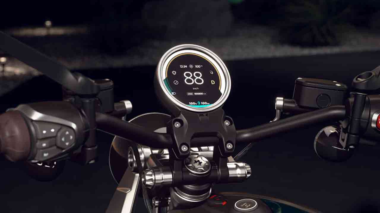 ఈ మోటార్సైకిల్లో 3.5 అంగుళాల రౌండ్ TFT టచ్ స్క్రీన్ డిస్ప్లేను అమర్చారు. స్నాప్డ్రాగన్ ఆధారిత ఇంటర్ఫేస్తో ఇది స్మూత్గా పనిచేస్తుంది. స్మార్ట్ఫోన్ కనెక్టివిటీతో పాటు నావిగేషన్, కాల్స్, మ్యూజిక్, వాయిస్ అసిస్టెంట్ వంటి సదుపాయాలు ఇందులో ఉన్నాయి. ఫ్యూయల్ ట్యాంక్ ప్లేస్లో వైరల్లెస్ ఫోన్ చార్జర్ కూడా అందించారు. 27W USB – C చార్జింగ్ పోర్టు కూడా ఉంది. ఈ బైక్లో ఎలక్ట్రానిక్ హ్యాండిల్ బార్ లాక్ కూడా ఉంది.