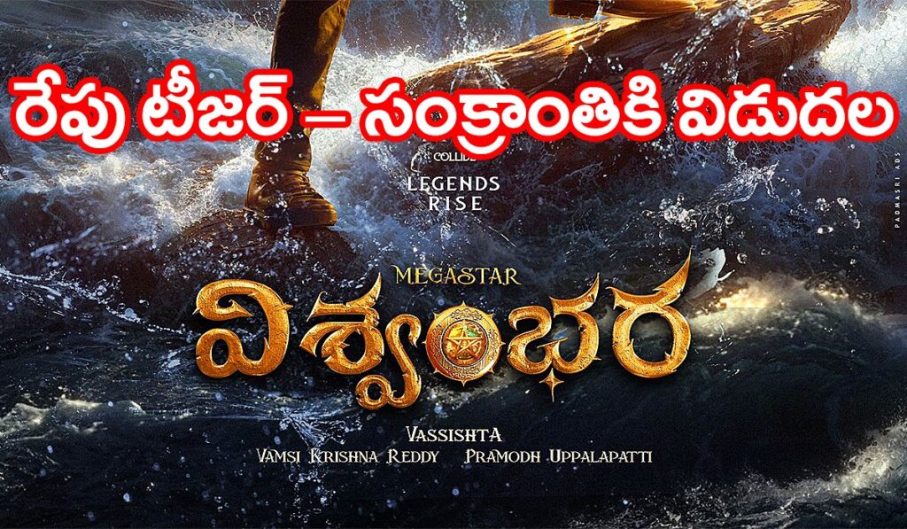 కాగా, రేపు విజయదశమి(Dasara) పర్వదినాన్ని పురస్కరించుకుని విశ్వంభర టీజర్(Teaser)ను ఉదయం 10.49 ని.లకు విడుదల చేయనున్నట్లు యువీ క్రియేషన్స్ అధికారికంగా ప్రకటించింది. గ్రాఫిక్స్ వర్క్ ఇంకా పెండింగ్ ఉందని, మెగాస్టార్ చికున్గన్యా పాలవడంతో సంక్రాంతికి విడుదల అవడం అసాధ్యమని సోషల్ మీడియా కోడై కూసినా, వాటన్నింటికీ చెక్ పెడుతూ సంక్రాంతికి వస్తున్నామని చిత్రబృందం అధికారికంగా కుండ బద్దలు కొట్టింది.