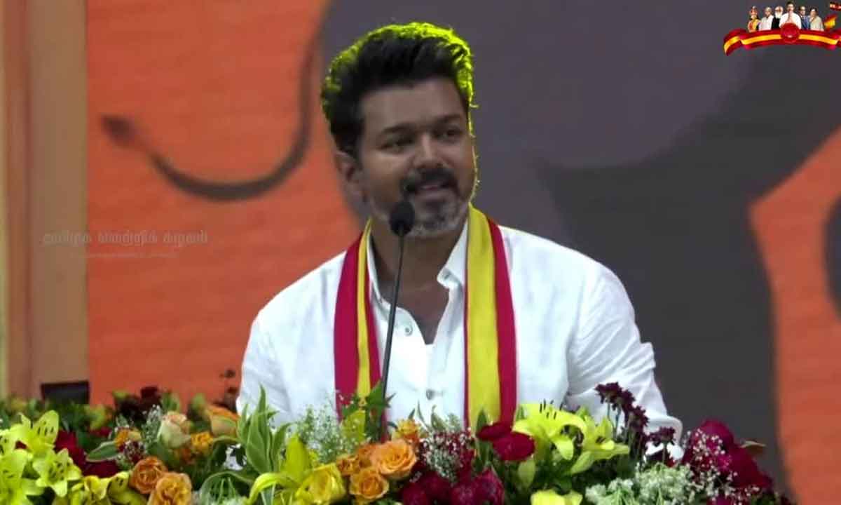 ప్రజా వ్యతిరేక ప్రభుత్వాన్ని వారు ద్రవిడ మోడల్ ప్రభుత్వంగా పిలుస్తున్నారని అధికార పార్టీపై మండిపడ్డారు. ఎన్టీఆర్, ఎంజీఆర్ సినీ రంగంలో ఎంతో పేరు ప్రఖ్యాతులు సంపాదించారని, వారు రాజకీయ రంగంలో ప్రవేశించిన అనంతరం కూడా తమ సేవా కార్యక్రమాలతో ప్రజల మనసులను దోచుకున్నారని పేర్కొన్నారు. బీజేపీతో తాము సిద్ధాంతపరంగా విభేదిస్తామని, డీఎంకే పార్టీని రాజకీయంగా వ్యతిరేకిస్తామని చెబుతూ విజయ్ తమ పార్టీ వైఖరిని స్పష్టం చేశారు. సమాజంలో చీలికలు తీసుకువచ్చేందుకు ఓ గ్రూప్ ప్రయత్నిస్తోందని, సమాజాన్ని విచ్ఛిన్నం చేసేందుకు ప్రయత్నించేవాళ్లు తమకు మొదటి శత్రువులని విజయ్ ఉద్ఘాటించారు.