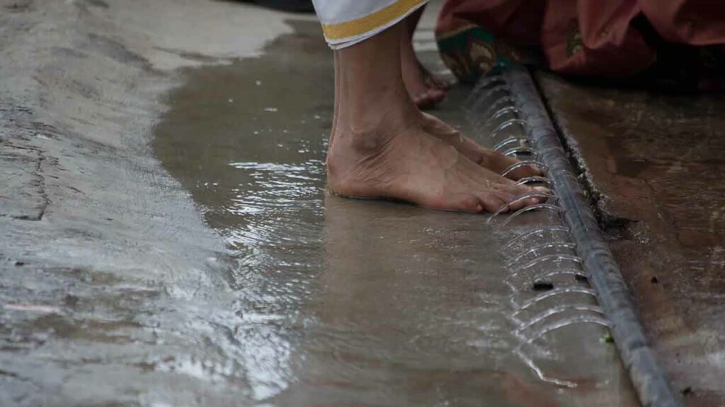 - భక్తులు ఎవరైనా సరే.. ఆలయం వద్దకు చేరుకోగానే పాదరక్షలు బయటనే వదిలేస్తారు. కొందరు శుభ్రంగా కాళ్లు కడుక్కోని ఆలయ ప్రవేశం చేస్తుంటారు. కానీ కొందరు నేరుగా వెళ్తుంటారు. ఇది మంచిది కాదని జ్యోతిష్య పండితులు హెచ్చరిస్తున్నారు. కాళ్లు కడుక్కోని, కొన్ని నీళ్లు తలపై చల్లుకోని ఆలయ ప్రవేశం చేయాలని సూచిస్తున్నారు.