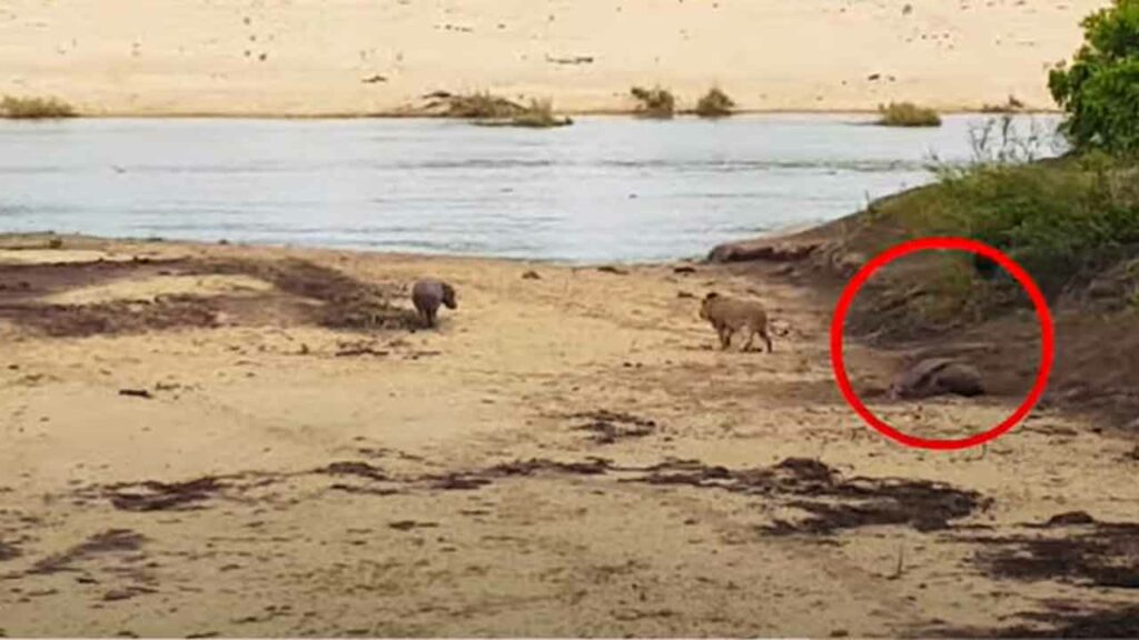 అది సౌతాఫ్రికా( South Africa )లోని క్రుగేర్ నేషనల్ పార్క్( Kruger National Park ).. ఓ నది ఒడ్డున హిప్పోపొటమస్( Hippopotamus ) తన బిడ్డతో కలిసి సేద తీరుతుంది. అటుగా వచ్చిన ఓ సింహం.. ఆ తల్లీబిడ్డను చూసింది. అలిసిపోయి అచేతనంగా ఉన్న హిప్పోపొటమస్పై దాడి చేసేందుకు సింహం యత్నించింది. కానీ పిల్ల హిప్పోపొటమస్ ఏ మాత్రం బెదరలేదు.