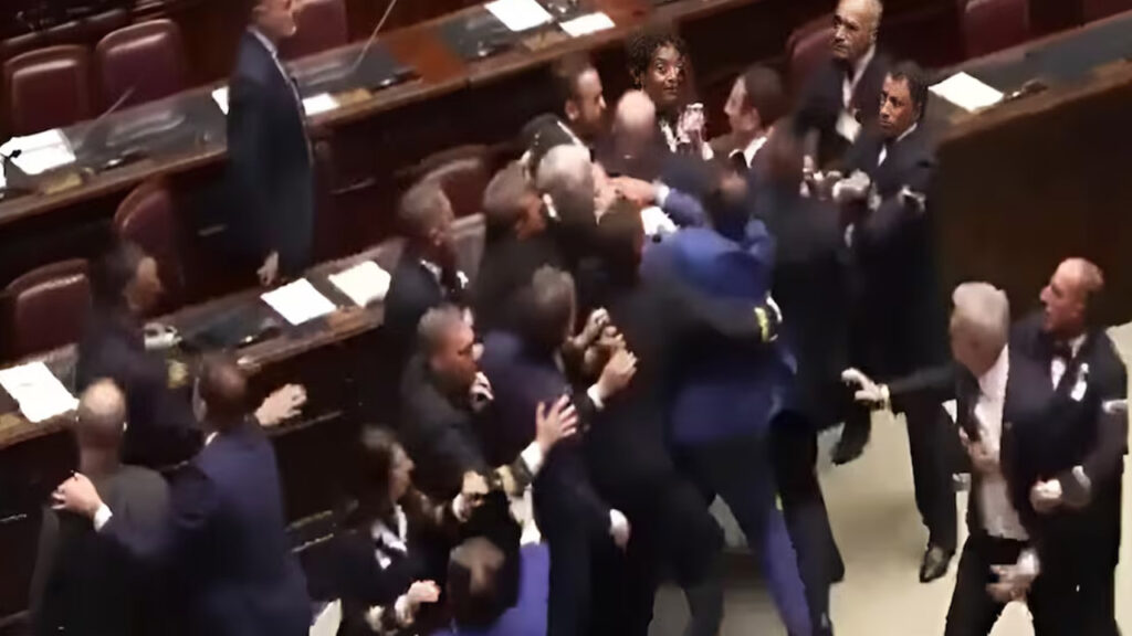 ఇటలీ ప్రధాని జార్జియా మెలోనీ అందరినీ సాదరంగా ఆహ్వానించారు. ఇలాంటి వేళ ఇటలీ పార్లమెంట్లో ఎంపీలు ఒకరిపై ఒకరు దాడి చేసుకోవడం గమనార్హం. పలు ప్రాంతాలకు మరింత స్వయం ప్రతిపత్తి కల్పించాలని రైటిస్ట్ గవర్నమెంట్ ప్లాన్ చేయడమే ఈ గొడవకు కారణమైంది. దీన్ని కొందరు ఫాసిజం రోజులతో పోల్చారు. ఫైవ్ స్టార్ మూవ్మెంట్ (MS5) డిప్యూటీ లియోనార్డో డోన్నో, ప్రో-అటానమీ నార్తర్న్ లీగ్కు చెందిన ప్రాంతీయ వ్యవహారాల మంత్రి రాబర్టో కాల్డెరోలీ మెడలో ఇటాలియన్ జెండాను కట్టడానికి ప్రయత్నించడం కొట్లాటకు దారితీసింది.