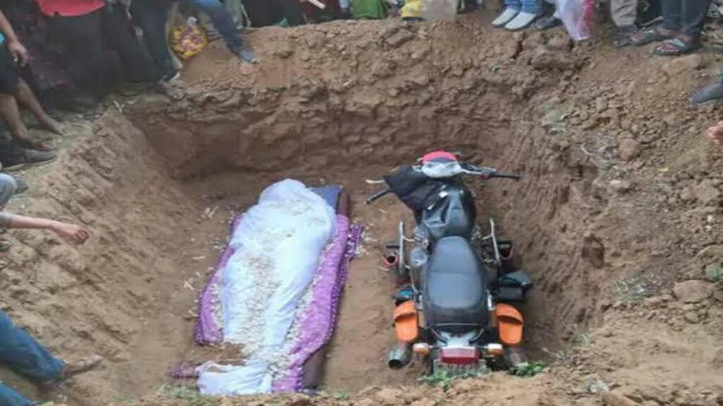 Heart breaking incident: రోడ్డు ప్రమాదం(Road Accident)లో మరణించిన(death) తమ కన్నకొడుకు(Son) మృతదేహం(Buried)తో పాటు అతనికి ఇష్టమైన బైక్(Bike)ని కూడా అతని తల్లిదండ్రులు సమాధి చేసిన ఘటన(Emotional Story) అక్కడి వారందరిని కంటతడి పెట్టించింది. సోషల్ మీడియా సైతం ఈ ఘటన పట్ల నెటిజన్లు తమ ఆవేదన వ్యక్తం చేస్తున్నారు. గుజరాత్(Gujarat)లోని ఆనంద్(Anand) జిల్లాకు చెందిన క్రిష్ పర్మార్(18) ఇంటర్మీడియట్ ఉత్తీర్ణత పొంది ఇటీవలే ఓ డిగ్రీ కళాశాలలో చేరాడు. కాలేజీకి బైక్ మీద వెళ్లి ఇంటికి తిరిగి వస్తున్న క్రమంలో ట్రాక్టర్ ట్రాలీ ఢీకొని గాయపడిన క్రిష్ పర్మార్(Krish Parmar) 12రోజుల పాటు ఆసుపత్రిలో చికిత్స పొందుతు మరణించాడు.