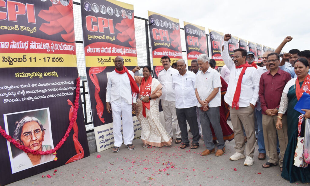 Telangana Armed Struggle । నిజాం నిరంకుశుత్వానికి (Nizam’s tyranny) వ్యతిరేకంగా మట్టి మనుషులే ఉక్కు మనుషులై తెలంగాణ రైతాంగ సాయుధ పోరాటాన్ని (Telangana Armed Struggle) నిర్వహించారని సీపీఐ జాతీయ కార్యవర్గ సభ్యుడు, మాజీ ఎమ్మెల్యే చాడ వెంకట్ రెడ్డి అన్నారు. అంతటి మహాత్తరమైన పోరాటాన్ని హిందూ- ముస్లిం గొడవలుగా (Hindu-Muslim conflict) చిత్రీకరించేందుకు ఫాసిస్టు బీజేపీ కుట్ర చేస్తుందని విమర్శించారు. సాయుధ పోరాటానికి మతం రంగు పులిమే బీజేపీ కుటిల ప్రయత్నాలను అడ్డుకోవాలని పిలుపునిచ్చారు. మంగళవారం హైదరాబాద్లోని ట్యాంక్బండ్పై సీపీఐ హైదరాబాద్ జిల్లా సమితి ఆధ్వర్యంలో ఏర్పాటు చేసిన తెలంగాణ రైతాంగ సాయుధ పోరాట యోధుల (Telangana peasant armed fighters) చిత్రాలతో కూడిన ఫొటో ఎగ్జిషన్ను ఆయన ప్రారంభించారు. ఈ సందర్భంగా చాడ వెంకట్రెడ్డి మాట్లాడుతూ.. నిజాం, భూస్వామ్య, పెత్తందారులు, దొరల నిరంకుశత్వానికి వ్యతిరేకంగా1931లో కమ్యూనిస్టు పార్టీ పోరాటాన్ని ప్రారంభించిందని, మట్టి మనుషులే ఉక్కు మనుషుల వలే పోరాటం చేశారని గుర్తు చేశారు. రావి నారాయణ రెడ్డి(Ravi Narayana Reddy), బద్దం ఎల్లారెడ్డి, మఖ్దూం మొహినుద్దీన్(Makhdoom Mohinuddin), దొడ్డి కొమురయ్య, చాకలి ఐలమ్మ (Chakali Ailamma) సాయుధ పోరాటానికి పిలుపునిచ్చారని తెలిపారు. భూస్వామ్య కుటుంబంలో జన్మించిన రావి నారాయణ రెడ్డి సాయుధ పోరాటంలో ప్రజలను భాగస్వామ్యులను చేయడంలో కీలకపాత్ర పోషించారని కొనియాడారు. ప్రజారాజ్యం కోసం పోరాటం జరిగిందన్నారు. ఉద్యమం ఉధృతంగా సాగుతున్న క్రమంలో సర్దార్ వల్లభాయ్ పటేల్ (Sardar Vallabhbhai Patel) నాటి నిజాంతో లోపాయకారి ఒప్పందం చేసుకున్నారని విమర్శించారు. విలీన దినోత్సవాన్ని అధికారికంగా నిర్వహించాలని కోరుతూ మహాత్తరమైన సాయుధ పోరాటాన్ని ఎందుకు ఇప్పటి వరకు గుర్తించలేదని చాడ వెంకట్ రెడ్డి ప్రశ్నించారు. కర్ణాటక, మహారాష్ట్రలలో విలీన దినోత్సవాన్ని అధికారికంగా నిర్వహిస్తారని, తెలంగాణలో మాత్రం ఎందుకు నిర్వహించబోరని ప్రశ్నించారు. ముఖ్యమంత్రి రేవంత్ రెడ్డి తెలంగాణ విలీన దినోత్సవాన్ని అధికారికంగా జరపాలని చాడ కోరారు. రాష్ట్ర రాజధాని హైదరాబాద్లో ‘తెలంగాణ సాయుధ పోరాట యోధుల స్మృతి వనం’ ఏర్పాటు చేయాలన్నారు.