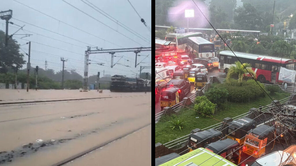 మొంథా తుఫాన్ ఆంధ్రప్రదేశ్ ను దాటి తెలంగాణలోకి ప్రవేశించింది. దీంతో రాష్ట్రంలోని పలు జిల్లాల్లో భారీ వర్షాలు కురుస్తున్నాయి. తుఫాన్ ప్రభావంతో వరంగల్ జిల్లాలోనూ వర్షాలు పడుతున్నాయి. దీంతో వరంగల్ నగరంతో పాటు జిల్లా మొత్తం అస్తవ్యస్తంగా మారింది. నగరంలో వర్షపు నీరు భారీగా చేరడంతో పలు ప్రాంతాలు నీట మునిగాయి. రోడ్లన్నీ చెరువుల్లా తలపిస్తున్నాయి. అండర్ బ్రిడ్జి అవతల శివనగర్ ఎస్ బీ ఐ ప్రాంతంలో భారీగా వరద నీరు నిలిచిపోయింది. డోర్నకల్ రైల్వే జంక్షన్ లోని పట్టాలు మొత్తం నీట మునిగాయి. హనుమకొండ చౌరస్తా ప్రింటింగ్ ప్రెస్ వీధి లో భారీగా ట్రాఫిక్ జామ్ ఏర్పడింది. నగరం మొత్తం ట్రాఫిక్ జామ్ తో వాహనదారులు తీవ్ర ఇబ్బందులు ఎదుర్కొంటున్నారు. సాయంత్రం 4 గంటల వరకు వరంగల్ జిల్లాలో సుమారుగా 148.1శాతం వర్షం నమోదు అయినట్లు అధికార వర్గాలు వెల్లడించాయి.