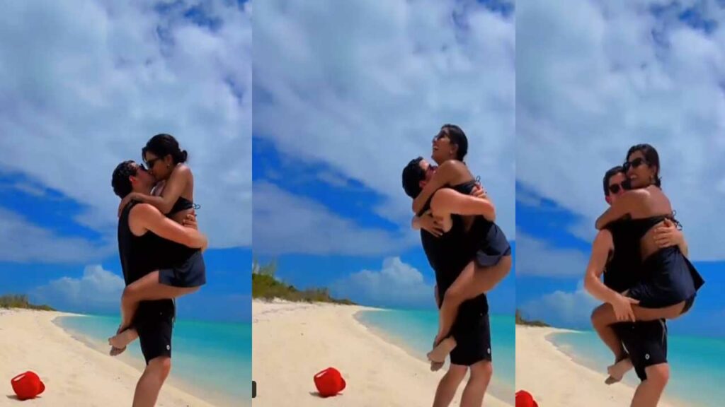 #PriyankaChopra and #NickJonas kiss each other at beach 🏖️ Couple Vibes ✅❤️ pic.twitter.com/txaGZarTvR