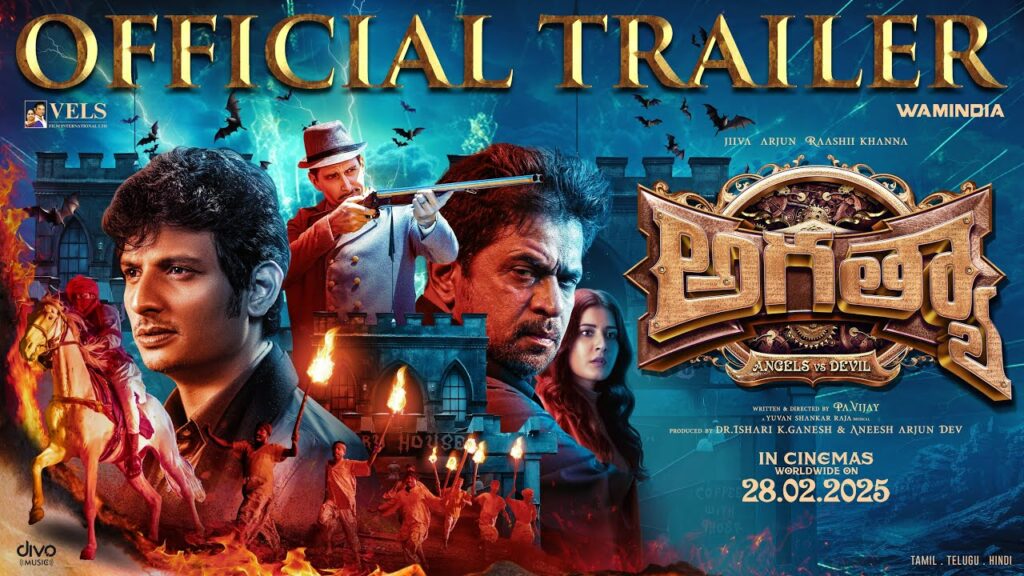 రంగం జీవా (Jiiva), రాశీ ఖన్నా (Raashii Khanna), అర్జున్ నటించిన తమిళ చిత్రం అగాతియా (Aghathiyaa). ప్రముఖ లిరిక్ రైటర్, దర్శకుడు, నిర్మాత జాతీయ అవార్డు గ్రహీత పా విజయ్ ఈ చిత్రాన్ని డైరెక్ట్ చేశాడు,. హర్రర్ థ్రిల్లర్ జానర్లో రూపోందిన ఈ చిత్రం ఫిబ్రవరి 28న థియేటర్లలోకి రానుంది.ఈ చిత్రాన్ని అదే పేరుతో తెలుగులో విడుదల చేస్తున్నారు. ఈ నేపథ్యంలో తాజాగా మంగళవారం ఈ సినిమా తెలుగు ట్రైలర్ రిలీజ్ చేశారు. Aghathiyaa Trailer