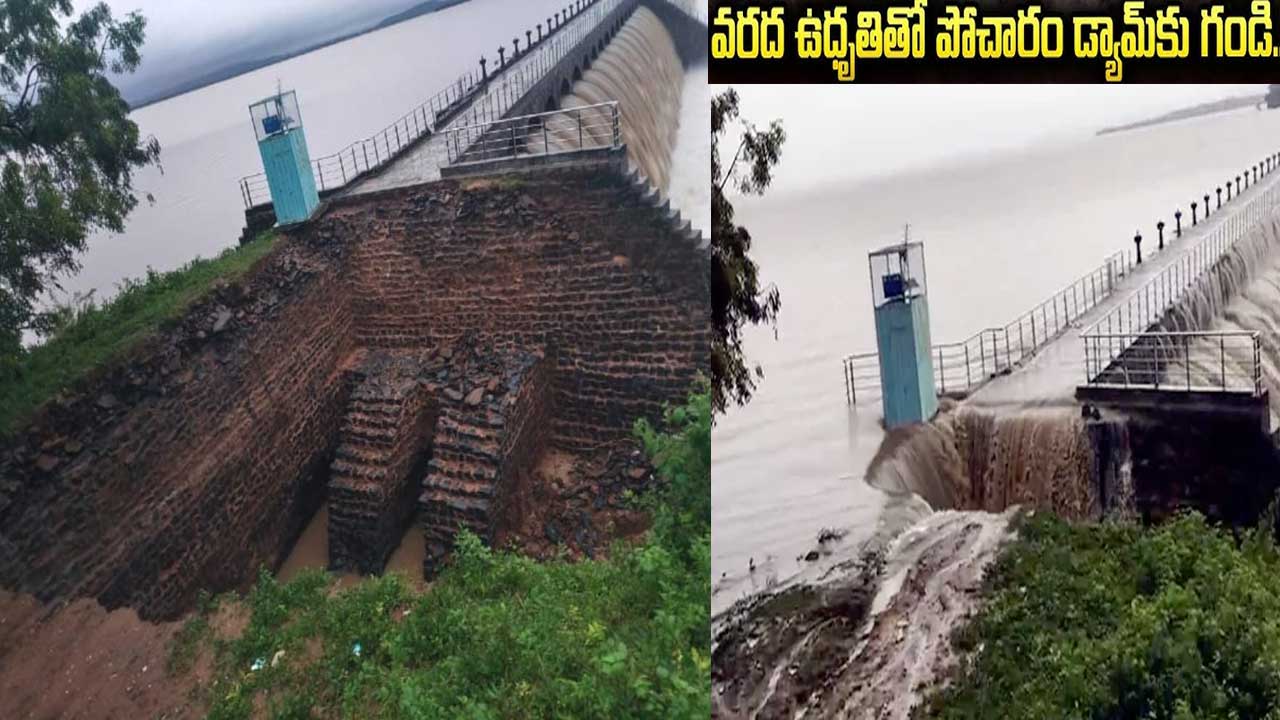 నిన్న భారీ వరదలతో పోచారం ప్రాజెక్టు పై నుంచి ఉదృతంగా వరద నీరు ప్రవహిస్తున్న దృశ్యం..