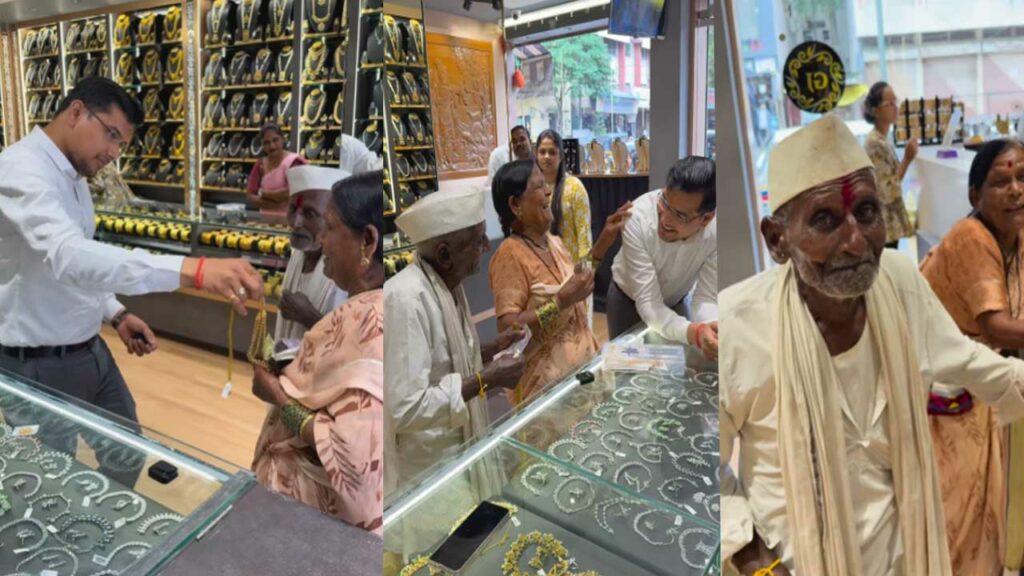 మహారాష్ట్ర జల్నా జిల్లాలోని అంభోరా జహంగీర్ గ్రామానికి చెందిన నివృతి షిండే(93), శాంతాబాయి(85) భార్యాభర్తలు. ఇద్దరికీ వివాహమై 70 ఏళ్లకుపైనే అయ్యింది. భార్య కోరిక మేరకు ఎప్పటి నుంచో అనుకున్నట్లుగా మంగళసూత్రం కొనివ్వాలని షిండే ఆమెను పట్టణంలోని జ్యువెలరీ షాపుకు తీసుకెళ్లాడు. తొలుత డబ్బులు అడుక్కొవడానికి షాపు లోపలికి వచ్చారని భావించిన షాపు యజమాని వారిని లోనికి అనుమతించలేదు. అయితే తాను మంగళసూత్రం కొనడానికి వచ్చానని షిండే చెప్పడంతో ఆ వృద్ధ దంపతులను షాపు లోకి అనుమతించారు. షాపులోని మంగళ సూత్రాలను వారికి చూపించాడు. నీ వద్ధ ఎంత డబ్బు ఉందని షిండేను అడుగగా..రూ.1120 ఉన్నాయని అమాయకంగా చెప్పాడు. దీంతో షాక్ గురైన షాపు యజమాని ఆ వృద్ద దంపతుల అమాయకత్వం..బంగారం ధర కూడా తెల్వకుండా 93ఏళ్ల వయసులో భార్యకు మంగళసూత్రం కొనాలనుకున్న షిండే సంకల్పం చేసి ఆశ్చర్యపోయాడు.