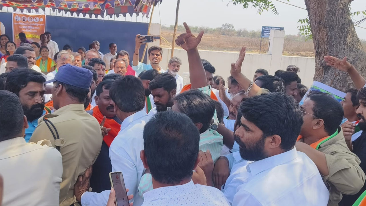 ఇరువర్గాలు ఒకేసారి చేరుకోవడంతో పరస్పరం నినాదాలు, జిందాబాద్ లు చేసుకోవడంతో ఉద్రిక్త పరిస్థితి నెలకొంది. ఒకరి నొకరు నెట్టేసుకోవడంతో ఇరువర్గాల మధ్య గొడవ జరిగింది. పరిస్థితిని గమనించిన స్థానిక పోలీసులు కాంగ్రెస్ బీజేపీ శ్రేణులను వేరుచేసి శాంతింపజేశారు. దీంతో సమస్య కాస్త సద్దుమణిగింది. బీజేపీ కృషి వాళ్లే ఎయిర్ పోర్టును పునరుద్ధరించారని ఆ పార్టీ నాయకులు చెబుతుండగా, ముఖ్యమంత్రి రేవంత్ రెడ్డి, కాంగ్రెస్ ప్రభుత్వం ప్రత్యేక శ్రద్ధ వహించి ఎయిర్ పోర్టు నిర్మాణానికి భూమి, నిధులు కేటాయించడం ఫలితంగా ఎయిర్పోర్టు పునరుద్ధరణకు కేంద్ర ప్రభుత్వం కృషి చేస్తుందని కాంగ్రెస్ నాయకులు చెబుతూ నాయకులు పరస్పరం పోటీ పడుతున్నారు.