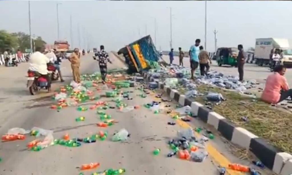 Cool Drinks Van: రోడ్లపై మద్యం లోడో లారీలు..కోడిగుడ్లు..చేపలు, కోళ్ల లోడ్ లారీలు..అయిల్ ట్యాంకర్లు బోల్తాపడిన సందర్భాల్లో సమీప జనం తమకు అందిన కాడికి తీసుకుని అక్కడి నుంచి ఉడాయించడం చూస్తుంటాం. అయితే ఈ ధఫా కూల్ డ్రింక్ బాటిల్స్ తో వెలుతున్న వ్యాన్ బోల్తా కొట్టింది. ఇంకేముంది అసలే వేసవి ఎండల తీవ్రతతో అల్లాడుతున్న జనం ఇదే అదనుగా చేతికందిన కాడికి కూల్ డ్రింక్స్ బాటిల్స్ పట్టుకుని పండగా చేసుకున్నారు. ఈ ఘటన విజయవాడ – మచిలీపట్నం హైవే పై చోటుచేసుకుంది. రహదారిపై వెలుతున్న కూల్ డ్రింక్ వ్యాన్ టైర్ పేలడంతో అదుపు తప్పి బోల్తా పడింది. ఈ ఘటనలో వ్యాన్ లో ఉన్న ముగ్గురికి గాయాలు అయ్యాయి.