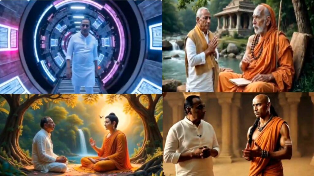 తన యాడ్ లో టైం మిషన్ ట్రావెల్ చేసిన మల్లారెడ్డి తన ప్రయాణంలో ఆది శంకరాచార్యులను కలుస్తాడు. ఆయన తిరుగులేని భవిష్యత్తునిచ్చే కోర్సులతో అద్భుతమైన విద్యాసంస్థలను స్థాపించు మల్లారెడ్డి..తధాస్తు అని దీవిస్తాడు. అనంతరం గౌతమ బుద్దుడిని కలవగా.. విజ్ఞానాన్ని పంచే సంస్థలను స్థాపించు మల్లారెడ్డి అని బుద్ధుడు చెబుతాడు. ఆ తర్వాత మల్లారెడ్డి రాజనీతిజ్ఞుడు గురు చాణక్యుడిని కలుస్తాడు. ఆయన రాజ్యాన్ని నిర్మించే విద్యావంతులను తయారుచేయి మల్లారెడ్డి అని ప్రభోదిస్తాడు. ఇక స్వామి వివేకానందను మల్లారెడ్డి కలవగా..యువతను మేలుకొలుపు. వారిలో జ్ఞానాన్ని వెలిగించు.. విజ్ఞానాన్ని పంచే విద్యాసంస్థలను స్థాపించు అంటూ చెబుతాడు.