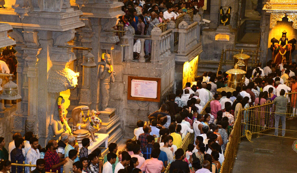 విధాత: యాదాద్రి శ్రీ లక్ష్మినరసింహస్వామి ఆలయానికి గురువారం రంజాన్ సెలవు దినం నేపథ్యంలో భక్తులు పోటెత్తారు. వేలాదిగా స్వామివారి దర్శనం కోసం వచ్చిన భక్తుల రద్ధీతో క్యూలెన్లు కిక్కిరిశాయి. కొండపైన, ఆలయ ప్రాంగణ పరిసరాలన్ని భక్తుల సందడితో కిటకిటలాడాయి. స్వామివారి దర్శనం కోసం భక్తులు రెండు నుంచి మూడు గంటల పాటు క్యూలైన్లలో వేచి ఉండాల్సివచ్చింది.