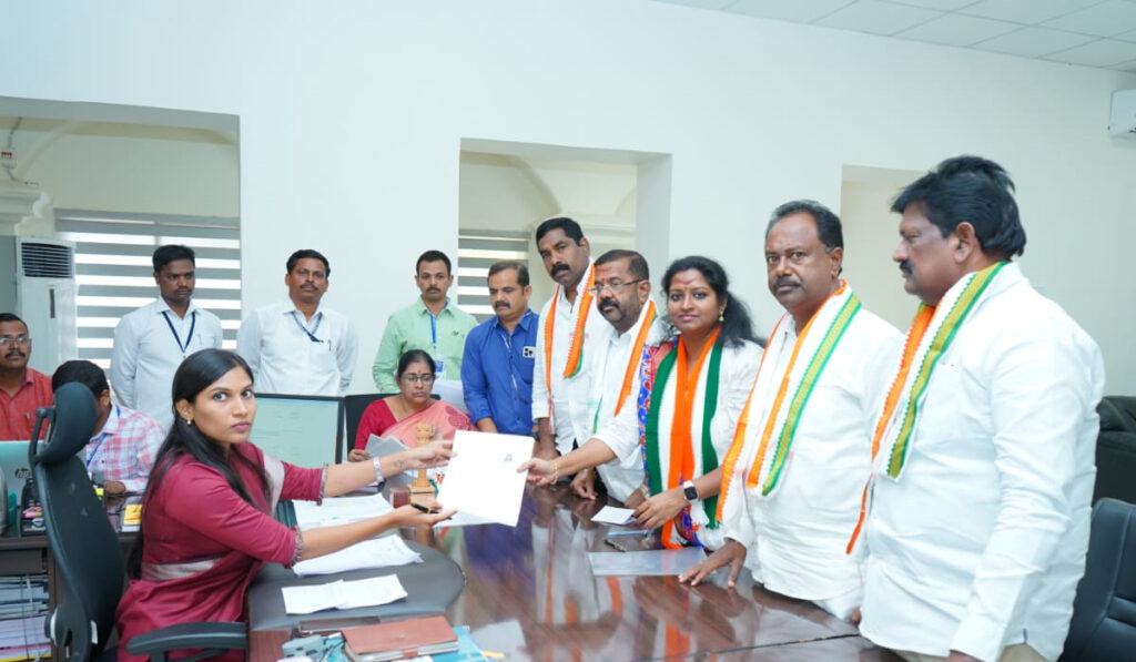 సోమవారం తోలి సెట్ నామినేషన్ ను డాక్టర్ కావ్య దాఖలు చేశారు. వరంగల్ పశ్చిమ ఎమ్మెల్యే నాయిని రాజేందర్ రెడ్డితో కలిసి భద్రకాళి అమ్మవారిని దర్శించుకొని ప్రత్యేక పూజలు చేసిన అనంతరం ఎమ్మెల్యేలు కడియం శ్రీహరి, నాయిని రాజేందర్ రెడ్డి, గండ్ర సత్యనారాయణ, కేఆర్ నాగరాజు, దొమ్మటి సాంబయ్యతో కలిసి వరంగల్ జిల్లా కలెక్టర్ కార్యలయంలో వరంగల్ పార్లమెంట్ ఎన్నికల రిటర్నింగ్ అధికారి, జిల్లా కలెక్టర్ పి. ప్రావీణ్యకి కాంగ్రెస్ పార్టీ ఎంపీ అభ్యర్థిగా డాక్టర్ కడియం కావ్య నామినేషన్ పత్రాలను దాఖలు చేశారు. ఈ కార్యక్రమంలో కాంగ్రెస్ పార్టీ ప్రజా ప్రతినిధులు, నాయకులు, కార్యకర్తలు పార్టీ శ్రేణులు తదితరులు పాల్గొన్నారు.