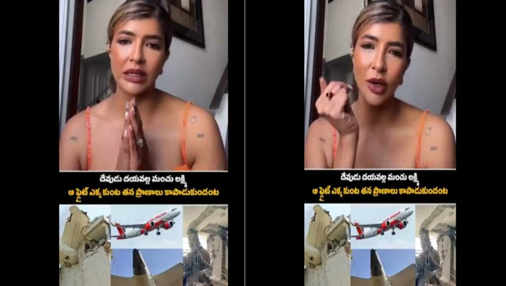 Manchu Lakshmi: దేవుడి దయ వల్ల నేను ఎయిర్ ఇండియా విమాన ప్రమాదం నుంచి క్షేమంగా బయటపడ్డానని నటి మంచు లక్ష్మి ఓ వీడియోలో తెలిపారు. ఆహ్మదాబాద్ విమానం ప్రమాదం జరిగిన రో జునే తాను ఎయిర్ ఇండియా ఫ్లైట్లో ప్రయాణించానని చెప్పారు. కానీ తాను ముంబై నుంచి లండన్ వెళ్లినట్లు చెప్పారు. చాలామంది తనకు ఏమైనా ప్రమాదం జరిగిందా అనే ఆందోళనతో కాల్స్ చేస్తున్నారని పేర్కొన్నారు. దేవుడి దయ వల్ల తాను క్షేమంగా ఉన్నానంటూ ఒక వీడియోను విడుదల చేశారు. ప్రమాదం జరిగిన రోజున నేను ఎయిరిండియా విమానంలోనే లండన్ వెళ్లడంతో నేను ఎలా ఉన్నానో కనుక్కోవడం కోసం ఎన్నో ఫోన్లు, మెసేజ్లు వస్తున్నాయని లక్ష్మి తెలిపారు.