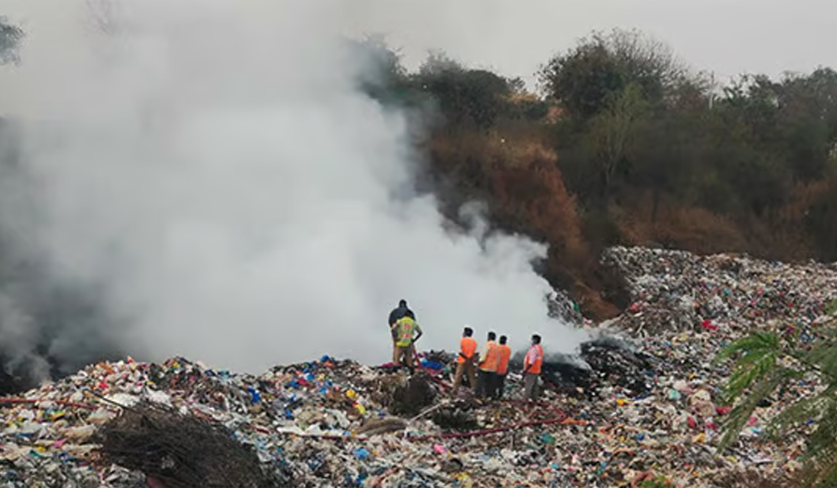 కాలుతున్న చెత్తతో కమ్ముకుంటున్న పొగ