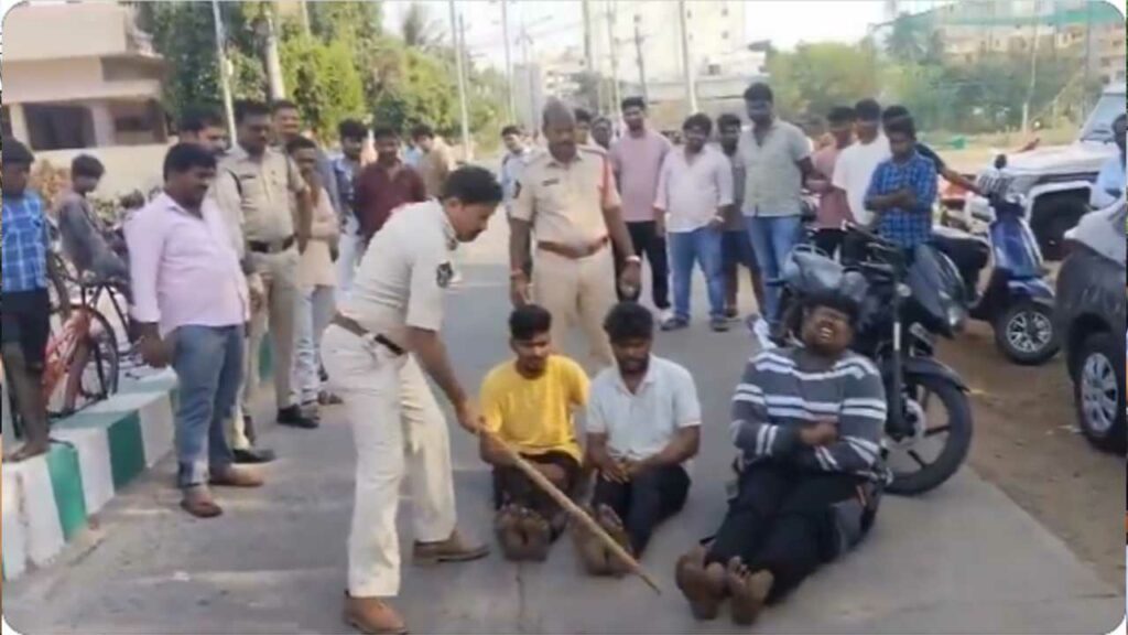 Police Beat Rowdy Sheeters: గుంటూరు జిల్లా తెనాలి పోలీసులు రౌడీ షీటర్లకు పోలీస్ మర్యదాలను ఏకంగా నడి రోడ్డుపైనే చూపించారు. ఇటీవల కాలంలో పట్టణంలో రౌడీ షీటర్ల ఆగడాలు అధికం కావడంతో పాటు గంజాయి మత్తులో పోలీస్ కానిస్టేబుల్ పై దాడికి పాల్పడ్డారు. ఈ విషయాన్ని సీరియస్ గా తీసుకున్న తెనాలి పోలీసులు రౌడీషీటర్లు విక్టర్, బాబూలాల్, రాకేష్ లను పట్టుకొచ్చి ఐతనగర్ లోని నడిరోడ్డు పై కూర్చొబెట్టారు. ఓ పోలీస్ నిందితుల కాళ్లపై కాలు పెట్టి అదిమి పట్టుకోగా మరొకరు లాఠీతో నిందితుల పాదాలపై వాచిపోయోలా కోటింగ్ ఇచ్చి తాగా తీశారు. పోలీస్ దెబ్బలకు తాళలేక నిందితులు వామ్మో అంటూ కేకలు, ఆర్తనాదాలు పెట్టారు. ఇందుకు సంబంధించిన వీడియోలు సోషల్ మీడియాలో వైరల్ గా మారాయి.