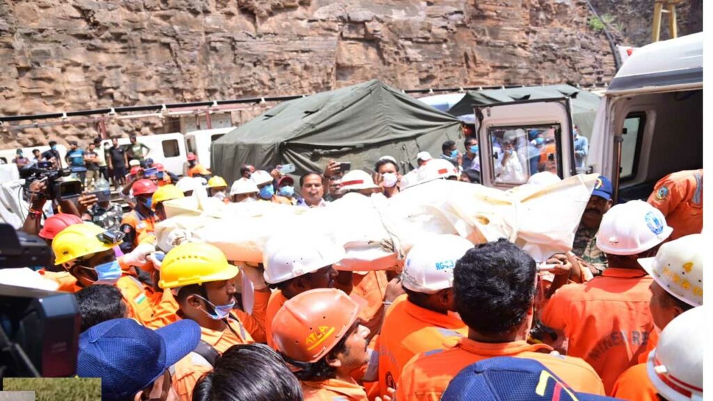 SLBC Tunnel: ఎస్ఎల్బీసీ టన్నెల్ లో రెస్క్యూ బృందాలు మరో మృతదేహన్ని బయటకు తీశాయి. టన్నెల్ ప్రమాదంలో మొత్తం 8మంది గల్లంతవగా.. ప్రమాదం జరిగిన 16వ రోజు గురుప్రీత్ సింగ్ అనే ఇంజినీర్ మృతదేహన్ని వెలికితీసి కుటుంబ సభ్యులకు అప్పగించారు. మంగళవారం 33వ రోజున వెలికి తీసిన మరో మృత దేహం ఉత్తరప్రదేశ్ రాష్ట్రానికి చెందిన ప్రాజెక్ట్ ఇంజినీర్ మనోజ్ కుమార్గా గుర్తించారు. కన్వేయర్ బెల్ట్కు 50 మీటర్ల దూరంలో టీబీఎం మిషన్ శకలాల కింద ఈ మృతదేహం కనిపించింది. మినీ హిటాచితో మట్టి తవ్వుతుండగా బయటపడింది.
