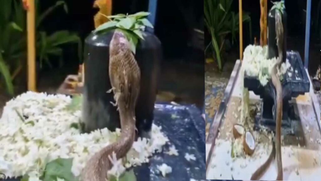 Viral, Snake Praying: మహాశివుడి కంఠాభరణంగా భాసిల్లే నాగాహారం నాగుపాము తరుచు పలుచోట్ల శివలింగాలను చుట్టుకున్న ఘటనలు అద్భుతంగా చూస్తుంటాం. అలాంటి అద్భుత ఘటన ఒకటి ఇప్పుడు సోషల్ మీడియాలో వైరల్ గా మారింది. ఓ నాగుపాము శివలింగాన్ని హత్తుకుని ఏదో ప్రార్థన చేసినట్లుగా వ్యవహారించింది. నెల్లూరు జిల్లా మనుబోలు చెర్లోపల్లి శ్రీవిశ్వనాథ స్వామి ఆలయంలో ఈ ఘటన చోటు చేసుకుంది. ఆలయంలోని శివ లింగం పక్కనే ఉన్న పుట్టలో నుంచి నాగుపాము బయటకు వచ్చి లింగంపైకి చేరింది. పడగ విప్పి కాసేపు శివలింగంపై అక్కడే ఉండి, తిరిగి పుట్టలోకి వెళ్లిపోయింది.