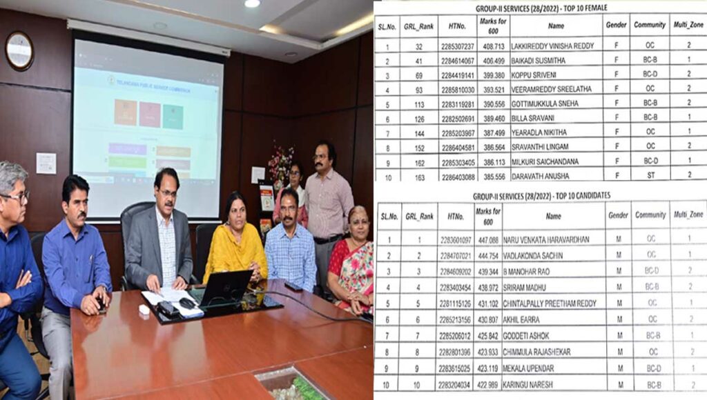 గ్రూప్ 2 అభ్యర్ధుల జనరల్ ర్యాంకింగ్స్ లిస్ట్ను అధికారిక వెబ్సైట్లో విడుదల చేశారు. మార్కులతోపాటు అభ్యర్థుల ఓఎంఆర్ షీట్స్ను కూడా వెబ్సైట్ లో కమిషన్ అందుబాటులో ఉంచింది. ఇక గ్రూప్ 2 ఫైనల్ ఆన్సర్ కీతో పాటు టాపర్స్ లిస్ట్ను కూడా టీజీపీఎస్సీ అధికారులు విడుదల చేశారు.