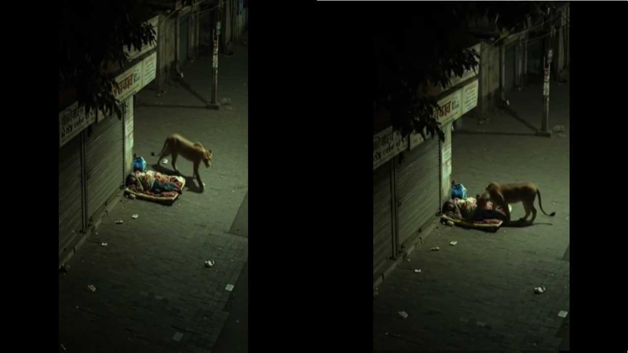 “भारत में सड़क पर सो रहा एक व्यक्ति शेर का शिकार होने से बच गया, जब शेर उसके पास आया, उसे सूंघा और फिर वहां से चला गया।”