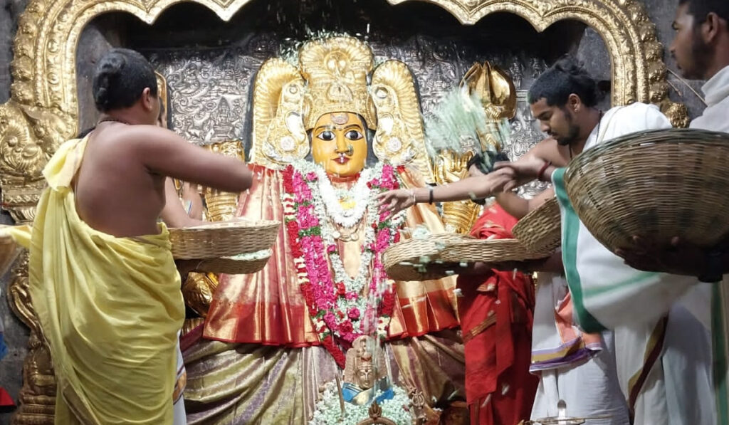 ఆలయాన్ని పూలతో సుందరంగా అలంకరణ