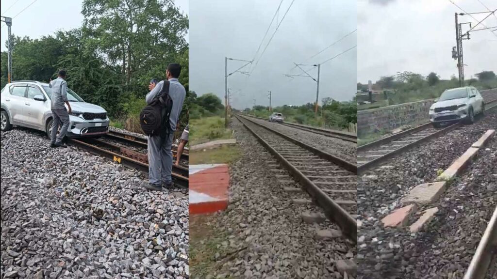 A woman turns Railway Tracks into Road, drives her car onto #RailwayTracks, stuns Railway staff, near #Shankarpalli , in #RangaReddy district.