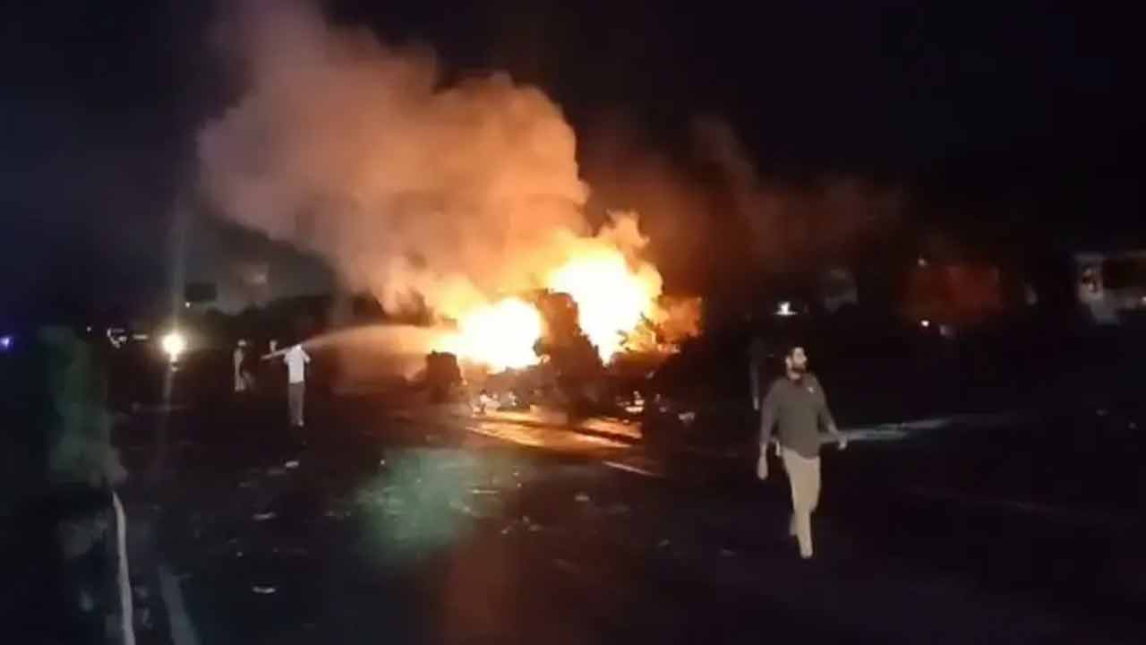 ఒక వైపు భారీగా ఎగిసిపడుతున్న మంటలు.. మరోవైపు గ్యాస్ సిలిండర్లు పేలుతున్న శబ్దాలతో వాహనదారులు, ప్రయాణికులు, స్థానికులు తీవ్ర భయాందోళనకు గురయ్యారు. ఈ మంటలు, శబ్దాలు కొన్ని కిలోమీటర్ల వరకు కనిపించాయి.. వినిపించాయి. భారీ పేలుళ్ల కారణంగా సమీపంలో ఉన్న వాహనాలు కూడా దెబ్బతిన్నాయి. రోడ్డు పూర్తిగా ధ్వంసమైంది. కిలోమీటర్ల మేర వాహనాలు ఆగిపోయాయి.