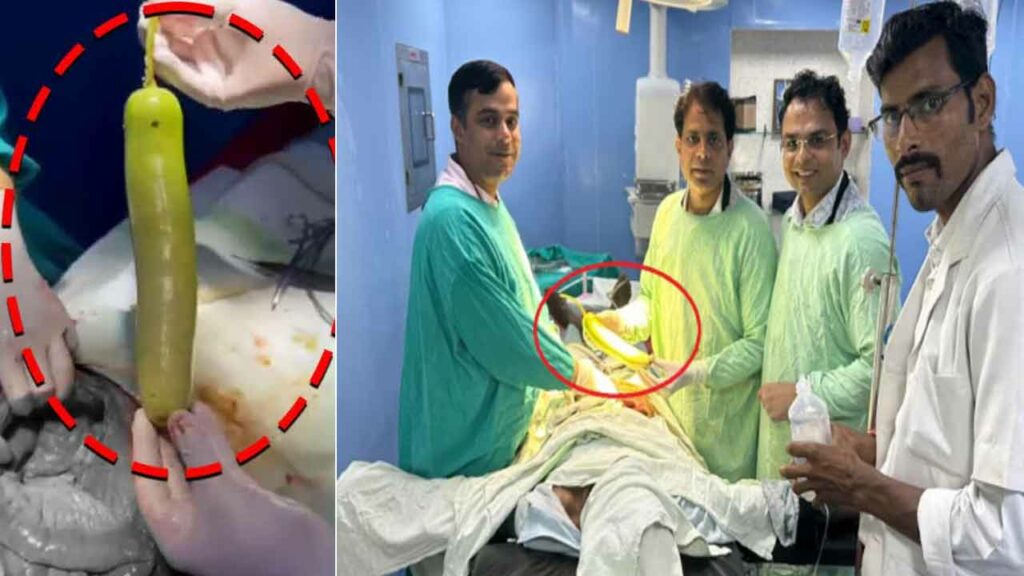 దీంతో ఏమాత్రం ఆలస్యం చేయకుండా బాధిత యువకుడిని శనివారం సర్జరీ నిర్వహించారు. కడుపులో ఉన్న రెండు అడుగుల సొరకాయను బయటకు తీశారు. సొరకాయకు తొడిమ కూడా ఉన్నట్లు వైద్యులు తెలిపారు. ఈ సొరకాయ కారణంగా యువకుడి కడుపులో ఉన్న పెద్ద పేగు నలిగిపోయిందని డాక్టర్లు పేర్కొన్నారు. సొరకాయ అతడి శరీరంలోకి మలద్వారం ద్వారా వచ్చిందని చెప్పారు. ఎవరైనా బలవంతంగా చొప్పించారా అన్న విషయం తెలియాల్సి ఉందని అన్నారు. బాధితుడు కూడా మానసిక సమస్యలతో బాధపడుతున్నట్లు తెలిసింది.