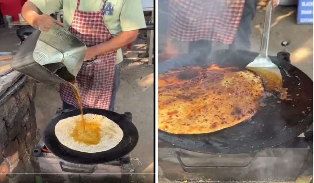 Diesel Paratha | పరాటాలు ఇష్టపడని వారు ఎవరుంటారు. చాలా మంది ఉదయం బ్రేక్ఫాస్ట్.. రాత్రిళ్లు భోజనంలోనూ తీసుకుంటారు. మరికొందరు మధ్యాహ్నం సమయంలనూ పరాటాలను ఇష్టపడి మరీ తింటుంటారు. రుచిగా ఉండడంతో ఎంతో ఇష్టంగా తీఉకుంటారు. ఈ పరాటాలను బట్టర్, నెయ్యి, నూనెతో కాల్చి చేస్తుంటారు. పరాటాల్లో ముఖ్యంగా ఆలు పరాటా గురించి ప్రత్యేకంగా చెప్పాల్సిన పని లేదు. కానీ, సోషల్ మీడియాలో ఓ వ్యక్తి చేసిన డీజిల్ పరాటా వీడియో సోషల్ మీడియా వైరల్గా మారింది. మరి ఆ డీజిల్ పరాటా కథ ఏంటో తెలుసుకుందాం.