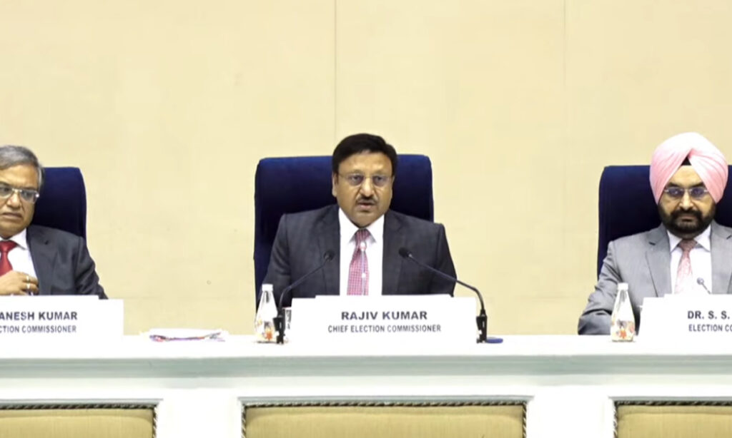 Poll schedule for J&K and Haryana । జమ్ముకశ్మీర్ అసెంబ్లీకి సెప్టెంబర్ 18 నుంచి మూడు దశల్లో ఎన్నికలు నిర్వహించనున్నట్టు కేంద్ర ఎన్నికల సంఘం శుక్రవారం ప్రకటించింది. హర్యానాకు అక్టోబర్ ఒకటిన పోలింగ్ ఉంటుంది. ఫలితాలను అక్టోబర్ 4న ప్రకటిస్తారు. శుక్రవారం న్యూఢిల్లీలో నిర్వహించిన మీడియా సమావేశంలో చీఫ్ ఎలక్షన్ కమిషనర్ రాజీవ్ కుమార్ (Chief Election Commissioner), ఎలక్షన్ కమిషనర్లు జ్ఞానేశ్కుమార్, డాక్టర్ సంధు ఈ మేరకు వివరాలు వెల్లడించారు. జమ్ముకశ్మీర్ (Jammu and Kashmir) అసెంబ్లీలో 90 స్థానాలు ఉన్నాయి. వీటికి మూడు దశల్లో (three phases) ఎన్నికలు నిర్వహిస్తామని రాజీవ్కుమార్ తెలిపారు. తొలి దశ సెప్టెంబర్ 18న (September 18) ఉంటుందని పేర్కొన్నారు.