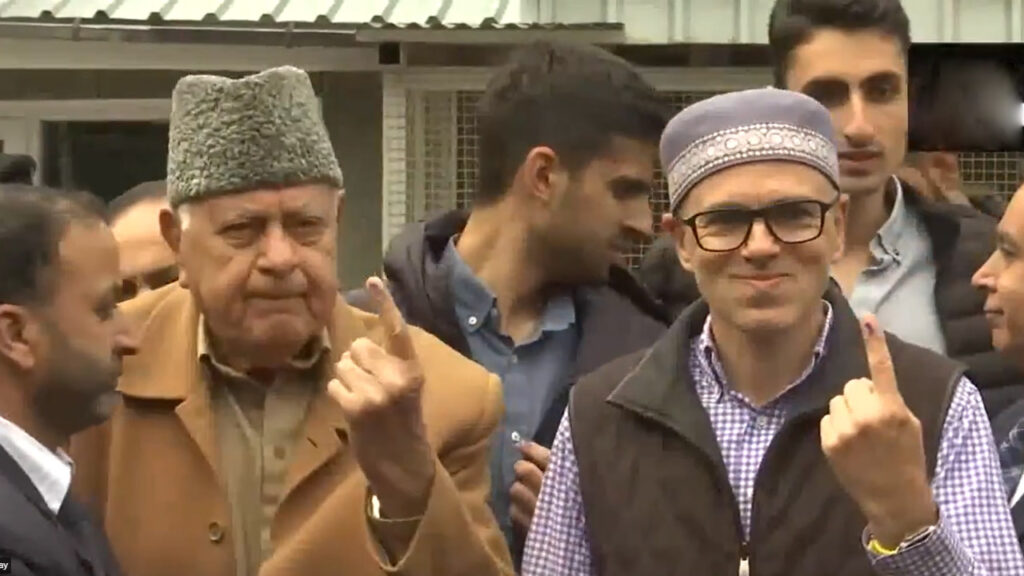 శ్రీనగర్ లోక్సభ స్థానం నుంచి నేషనల్ కాన్ఫరెన్స్ పార్టీ (NC) అగా సయ్యద్ రుహువుల్లా మెహదీని బరిలో దింపింది. ఇక్కడి నుంచి మాజీ సీఎం మెహబూబా ముఫ్తీ నేతృత్వంలోని పీడీపీ వహీద్ ఉర్ రెహమాన్ పారాను, జమ్ముకశ్మీర్ అప్నీ పార్టీ మహమ్మద్ అష్రఫ్ మిర్ను బరిలో నిలిపాయి. ఓటేసిన అనంతరం పోలింగ్ బూత్ నుంచి బయటికి వచ్చిన ఫరూఖ్ అబ్దుల్లా, ఒమర్ అబ్దుల్లా తమ వేళ్లపై సిరా గుర్తులను చూపించారు.