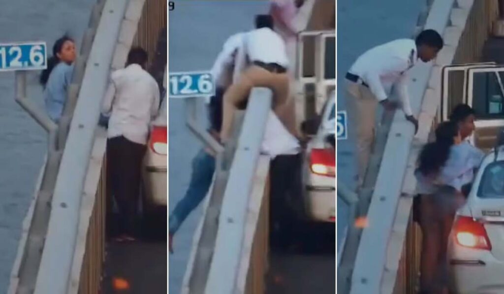STORY | Woman loses balance while sitting on Mumbai’s Atal Setu safety barrier, saved by alert cop