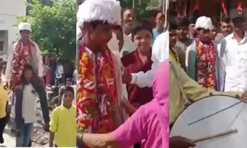 దీంతో గ్రామస్థులందరూ బ్యాండు మేళంతో అతడిని ఊరేగించి వేడుక చేశారు. pic.twitter.com/rDZ5AvMlbp