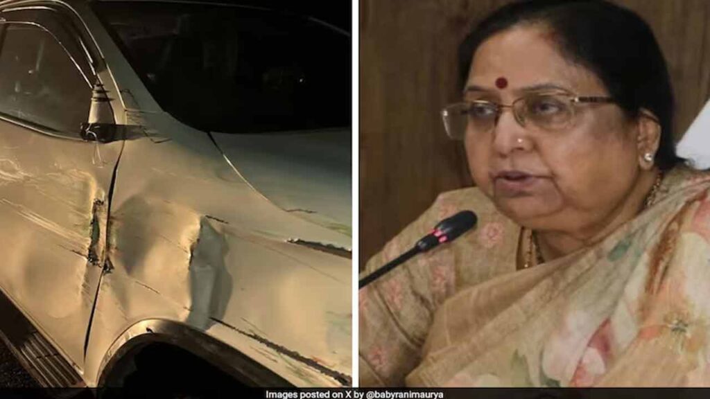 Truck hits Minister Car | లక్నో : ఉత్తరప్రదేశ్( Uttar Pradesh ) మహిళా, శిశు అభివృద్ధి శాఖ మంత్రి బేబి రాణి మౌర్య( Baby Rani Maurya )కు పెను ప్రమాదం తప్పింది. ఆగ్రా – లక్నో ఎక్స్ప్రెస్ వే( Agra – Lucknow Expressway )పై శుక్రవారం రాత్రి మంత్రి ప్రయాణిస్తుండగా, ఆమె కారును వేగంగా వచ్చిన ఓ ట్రక్కు ఢీకొట్టింది. ఈ ప్రమాదంలో మంత్రికి ఎలాంటి గాయాలు కాలేదు. దీంతో పోలీసులు ఊపిరి పీల్చుకున్నారు.