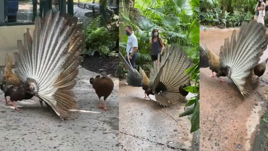ఆ సమయంలో ఆ పార్కుకు వచ్చిన సందర్శకులు వాటి చుట్టు చేరి ఫోటోలు తీస్తున్నప్పటికి వారిని పట్టించుకోకుండా మగ నెమలి పట్టు వీడకుండా దృష్టి మరల్చకుండా ఆడ నెమలి ముందు తన ప్రేమ ప్రయత్నాలు కొనసాగించింది. ఇది చూసిన సందర్శకులు ఇదేమి ప్రేమ పాట్లురా బాబు అనుకుంటూ ఆసక్తిగా చూశారు.