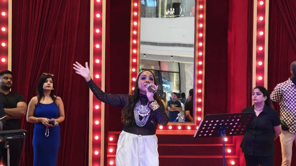 విధాత, హైదరాబాద్: అపర్ణా నియో మాల్లో జరుగుతున్న NEOSS షాపింగ్ ఫెస్టివల్లో ఆదివారం సెలబ్రిటీ షో జరిగింది. ఈ వేడుకలో ప్రముఖ ప్లేబ్యాక్ సింగర్ భార్గవి పిళ్ళై తన పాటలతో ప్రేక్షకులను ఉర్రూతలూగించింది. ఆమె లైవ్ పర్ఫార్మెన్స్ చూడటానికి వచ్చిన వందలాది మంది అభిమానులతో మాల్ మొత్తం సందడిగా మారిపోయింది. పాటలు, డ్యాన్స్లతో షాపింగ్ ఫెస్టివల్ మరింత కళను సంతరించుకుంది.