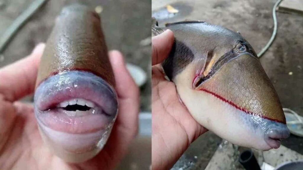 A fish with human-like lips and teeth known ad trigger fish #viralvideo pic.twitter.com/Edz1pLt8qv