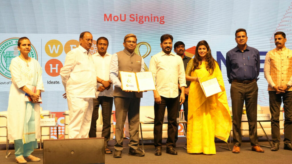 హైదరాబాద్: ప్రముఖ స్టాక్ ఎక్స్ఛేంజ్ నేషనల్ స్టాక్ ఎక్స్ఛేంజ్ (ఎన్ఎస్ఈ), తెలంగాణ ప్రభుత్వ కార్యక్రమం అయిన వి హబ్ ఫౌండేషన్ (విమెన్ ఆంత్రప్రెన్యూర్స్ హబ్ ఫౌండేషన్) మధ్య ఒక అవగాహన ఒప్పందం (MOU) కుదిరింది. ఈ ఒప్పందం ద్వారా తెలంగాణలో ఆర్థిక అక్షరాస్యతను ప్రోత్సహించడం, మహిళా వ్యవస్థాపకులకు సాధికారత కల్పించడం, ఎంఎస్ఎంఈలకు నిధుల సేకరణను సులభతరం చేయడం, అలాగే విద్యార్థుల నైపుణ్య కార్యక్రమాలను అమలు చేయడం లక్ష్యంగా పెట్టుకున్నారు.