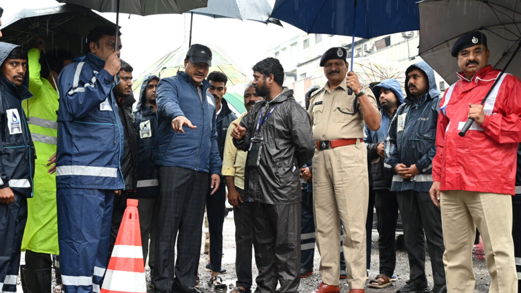 `మోంథా` తీవ్ర తుఫానుతో ఎడతెరిపి లేకుండా కురుస్తున్న వర్షాల నేపథ్యంలో లక్డికాపూల్ పరిసర ప్రాంతాలను హైడ్రా, జీహెచ్ ఎంసీ కమిషనర్లు ఏవీ రంగనాథ్, ఆర్ వీ కర్ణన్ లు పరిశీలించారు. మాసబ్ ట్యాంకు నుంచి లక్డికాపూల్ వైపు వస్తున్నప్పుడు మెహదీ ఫంక్షన్ హాల్ వద్ద వర్షపు నీరు రోడ్డు మీద నిలవడానికి కారణాలను కమిషనర్లు అధికారులను అడిగి తెలుసుకున్నారు. ఇక్కడ వర్షపు నీరు నిలవడంతో తీవ్ర ట్రాఫిక్ సమస్యలు తలెత్తుతున్నాయని.. వెంటనే ఈ సమస్యను పరిష్కరించాలని ఇరువురు కమిషనర్లు అధికారులను ఆదేశించారు. ఇప్పటికే ఇక్కడ ఇరువైపులా రోడ్డును తవ్వి రెండు ఫీట్ల విస్తీర్ణంతో ఉన్న పైపులైన్లను వేశామని.. వాటికి మహవీర్ ఆసుపత్రి పరిసరాలతో పాటు చింతలబస్తీ ప్రాంతాల నుంచి వచ్చిన మురుగు, వరద నీటిని అనుసంధానం చేయాల్సినవసరం ఉందన్నారు.