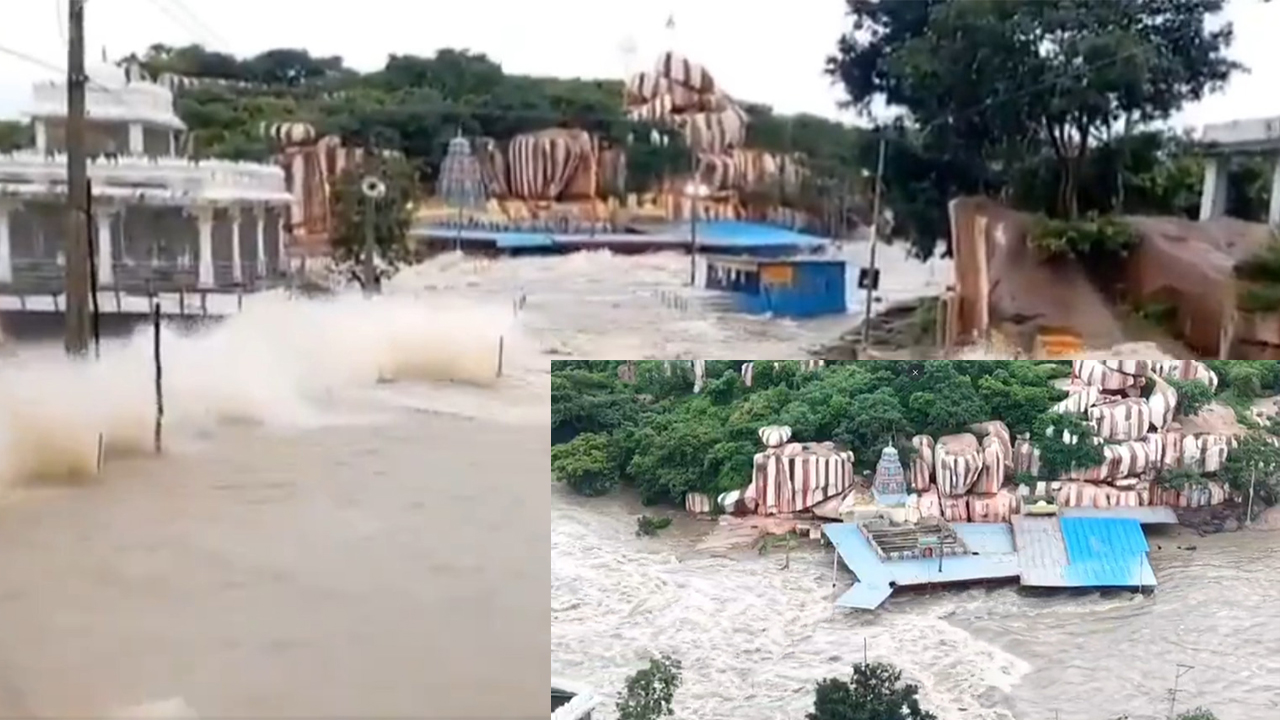 మంజీరా వరదల కారణంగా మెదక్లో ఏడుపాయల ఆలయం ముంచెత్తి, భక్తులు రాజగోపురంలో మాత్రమే దర్శనం పొందుతున్నారు.