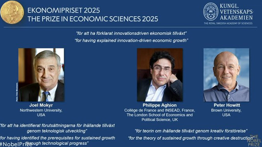 ఆర్ధిక శాస్త్రంలో మోకిర్, ఫిలిప్, పీటర్ కి నోబెల్ ఆవిష్కరణ ఆధారిత ఆర్ధిక వృద్ధి, సృజనాత్మక విధ్వంసం సిద్ధాంతానికి ప్రైజ్.