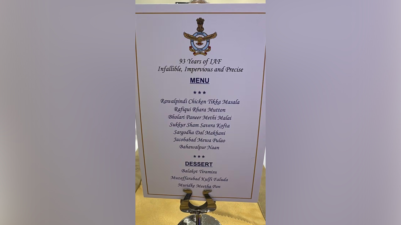భారత వాయుసేన 93వ వార్షికోత్సవ వేడుకల్లోని వంటకాల మెనూ వైరల్ అయింది. వైమానిక దాడులు జరిగిన పాకిస్తాన్ నగరాల పేర్లతో వంటకాలను ఏర్పాటు చేశారు.