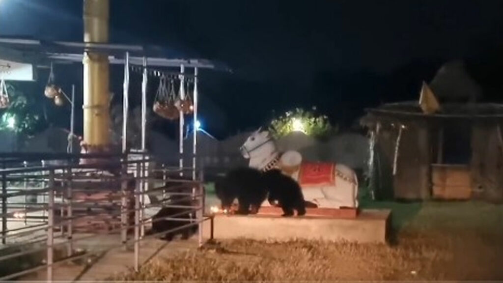 అయితే ఎలుగుబంట్లు ఆలయంలో అటు ఇటు తిరుగుతున్న క్రమంలో సెన్సార్ సైరన్ మోగింది. సెన్సార్ సైరన్ మోత శబ్ధానికి ఎలుగుబంట్లు భయంతో పరుగులు తీశాయి. అదృష్టవశాత్తు ఎలుగుబంట్లు వచ్చిన సమయంలో ఆలయంలో భక్తులు ఎవరు లేకపోవడంతో ప్రమాదం తప్పింది.