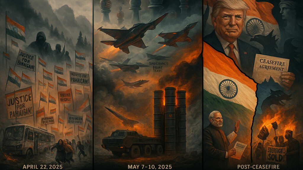 Operation Sindoor | 22-4-2025 తేదీన పహల్గామ్ పర్యాటకుల పై అనూహ్య స్థాయిలో “ఉగ్రవాద” అమానుష దాడి జరిగింది. ఫలితంగా పాకిస్తాన్, భారతదేశం మధ్య ఉద్రిక్త పరిస్థితి ఏర్పడింది. అది 19 రోజులు కొనసాగింది. అది ఒక దశలో యుద్ధ వాతావరణంగా కూడా మారింది. ఆ పరిస్థితి 7-5-2025 తేదీన క్రాస్ బోర్డర్ దాడుల వరకూ వెళ్ళింది. 10-5-2025 న ట్రంప్ మధ్యవర్తిత్వంలో భారత పాకిస్తాన్ మధ్య ఆకస్మికంగా కాల్పుల విరమణ ఒప్పందం కుదిరింది.