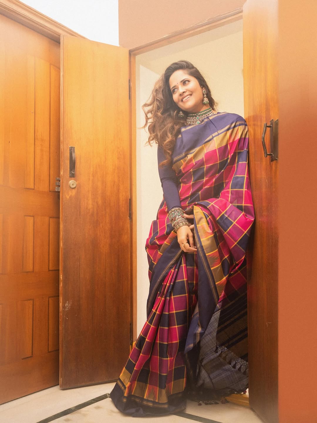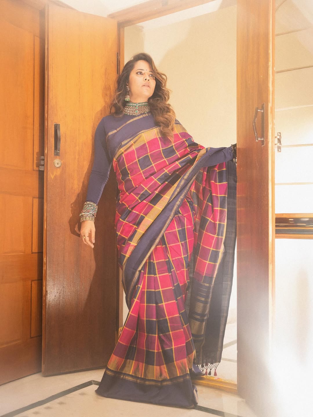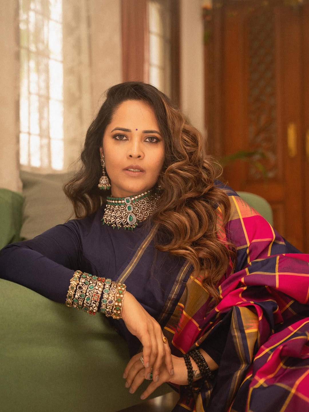 Anasuya Bharadwaj never fails to impress with her timeless charm, and these saree moments are no exception. Draped in a beautifully styled saree that blends tradition with sophistication, she effortlessly steals the spotlight.